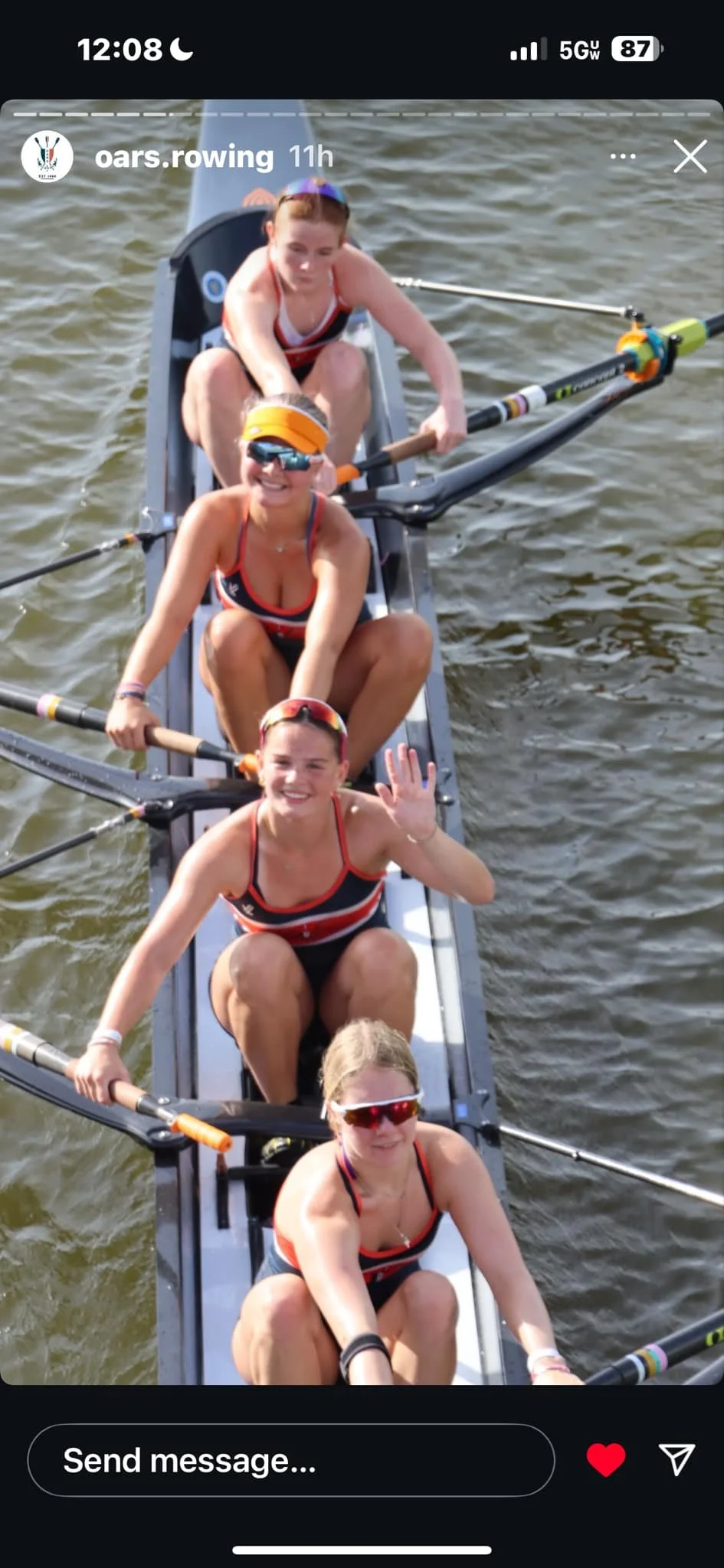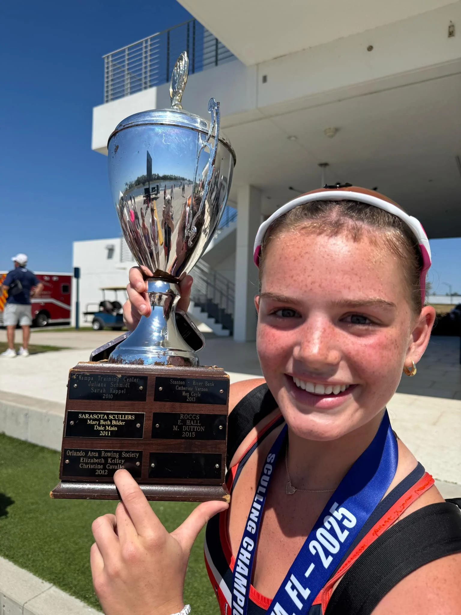Hi! My name is Emmie (class of 2027), I'm 16 years old, and I have been rowing for 4 years for Orlando Area Rowing Society (OARS). My sophomore year, I competed in my team’s 1st Varsity 8+, 4+, and 2x, along with the U17 8+ which I raced at Youth Nationals.